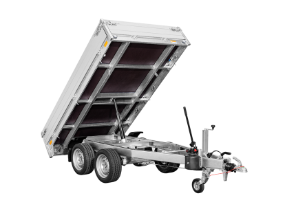 Der Anhänger 3-SKS 3100/17 T (zulässiges Gesamtgewicht 3500 kg) wurde für den professionellen Einsatz entwickelt. Mit einer Nutzlast von 2518 kg, einem verwindungssteifen Stahlrahmen und einer elektrischen Hydraulikpumpe bietet er maximale Zuverlässigkeit im täglichen Einsatz.