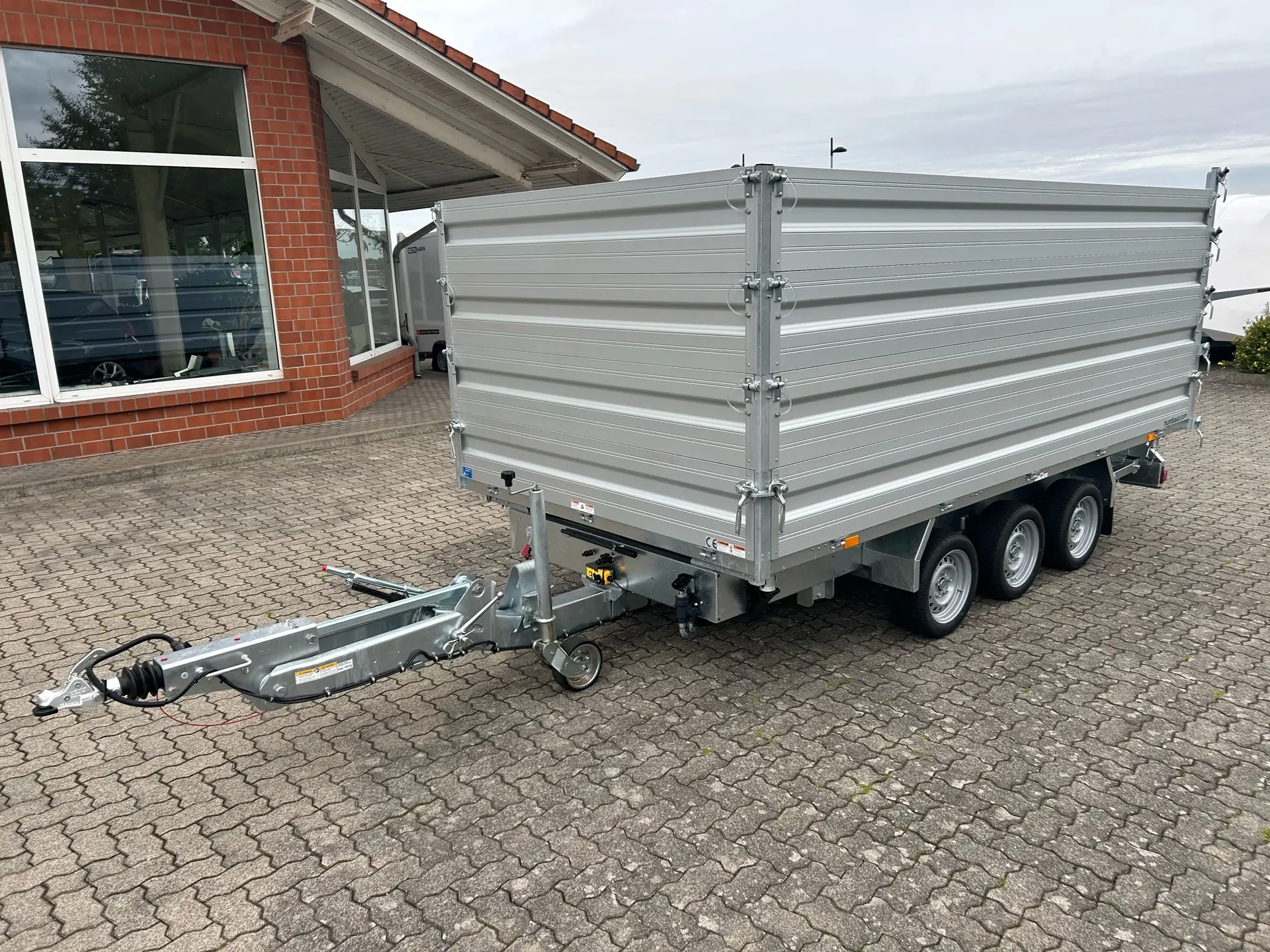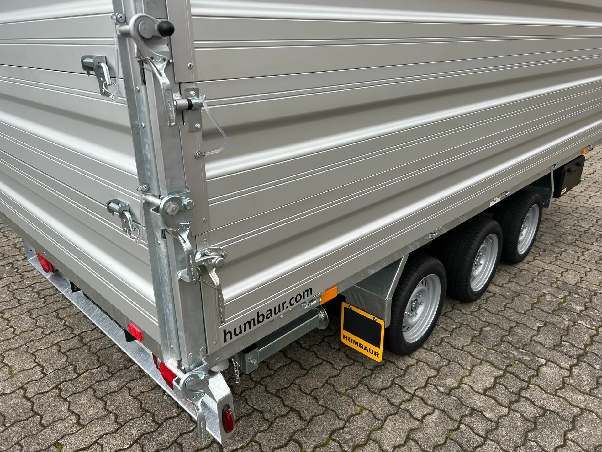 Der Humbaur HTK 3500.41 ist ein professioneller Auto-Transportanhänger als Dreiseitenkipper mit 3.500 kg zulässigem Gesamtgewicht. Dank dreiachsigem Fahrwerk, hydraulischer Kippfunktion und robuster, feuerverzinkter Konstruktion eignet er sich ideal für Werkstätten, Bauunternehmen und Fahrzeugtransporte.