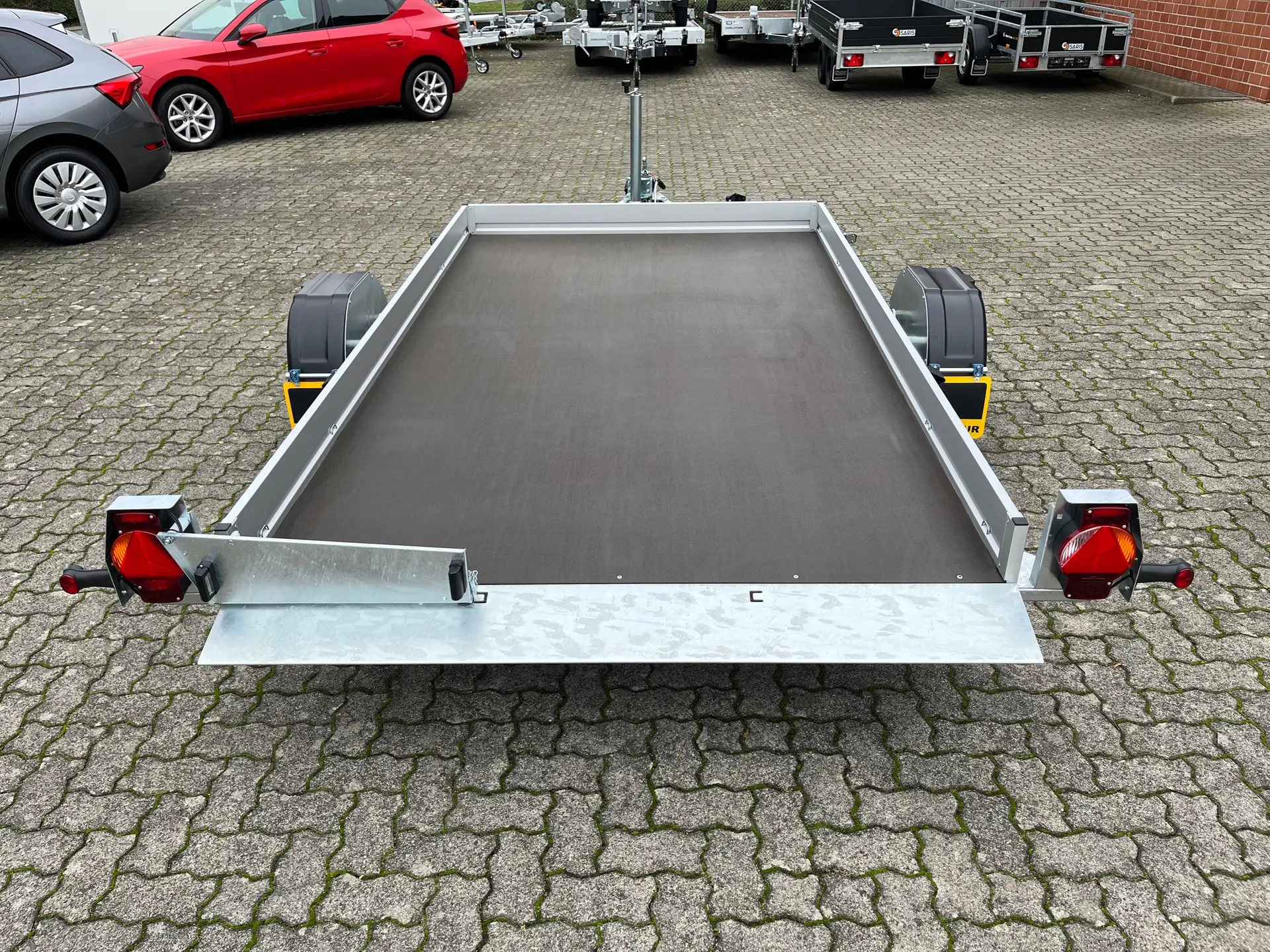 Dank des tiefergelegten Fahrgestells und der hydraulisch absenkbaren Ladeplattform wird das Be- und Entladen von Quads, Motorrädern, Rasentraktoren oder Kleinwagen deutlich erleichtert. Das bewährte Auflaufbremssystem sorgt für kontrolliertes und sicheres Fahrverhalten – auch bei voller Auslastung.