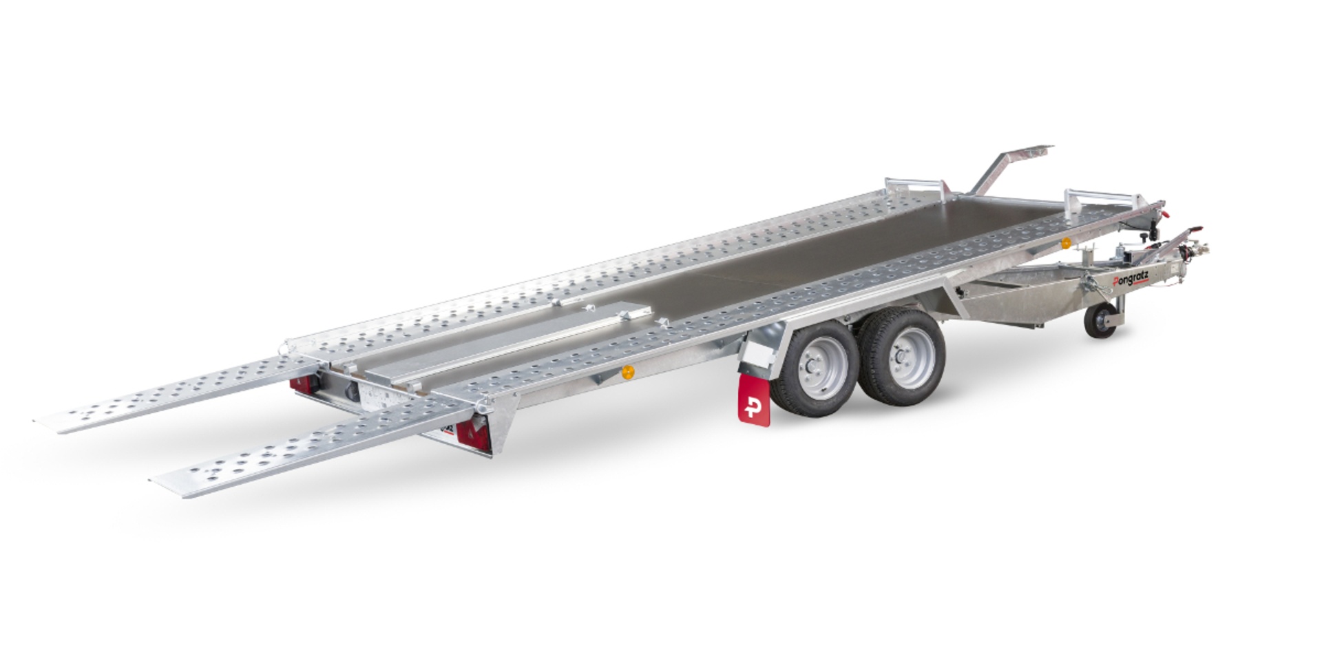 Der Pongratz E-AT 400 T-K Autotransporter (2500 kg) bietet einen sicheren und komfortablen Fahrzeugtransport für Privat- und Gewerbekunden. Die kippbare Ladefläche, einhängbare Auffahrrampen und gelochte Standsschienen ermöglichen ein einfaches und kontrolliertes Auffahren.