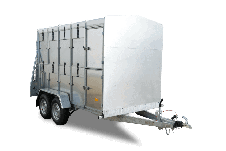 Der Pongratz EVA 300/16 T (2700 kg) aus der ECOPLUS Serie ist ein robuster und sicherer Viehanhänger für den professionellen Tiertransport.