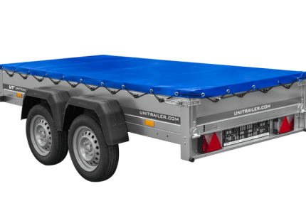 Anhänger Plattform 2 Achsen UNITRAILER 264/2 KIPP mit blauer PVC-Plane