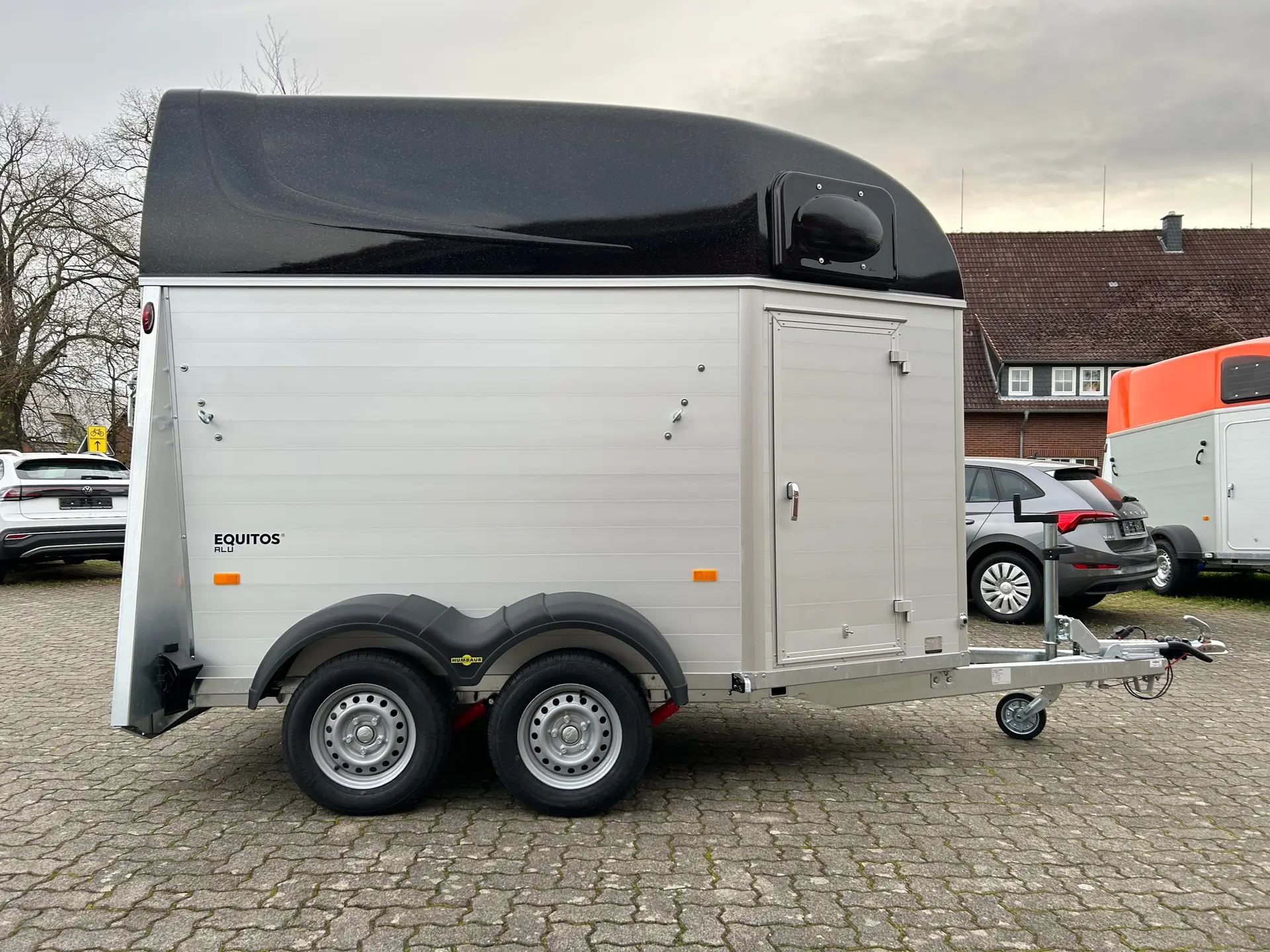 Der Equitos Alu Black 2000 kann individuell ausgestattet werden – z. B. mit abschließbarer Sattelkammer, Dachfenster, Fohlengitter, Alufelgen, Reserverad oder deutschlandweiter Anlieferung und Zulassung. So entsteht ein Pferdeanhänger, der exakt auf Ihre Anforderungen abgestimmt ist.