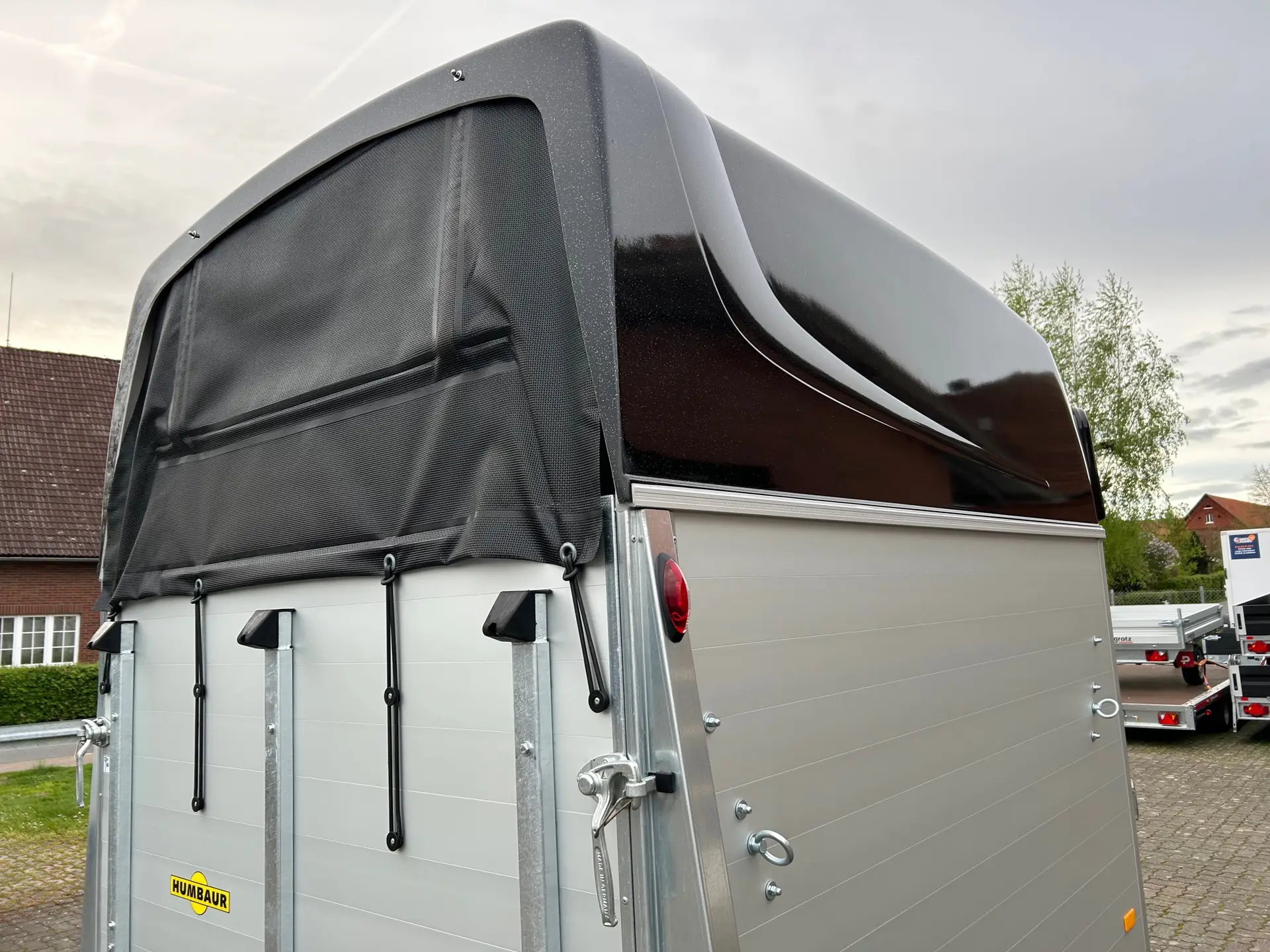 Mit seiner eleganten Polyhaube in Black Metallic und einer großzügigen Innenhöhe von 2.300 mm verbindet dieser Pferdeanhänger zeitloses Design mit durchdachter Funktionalität.