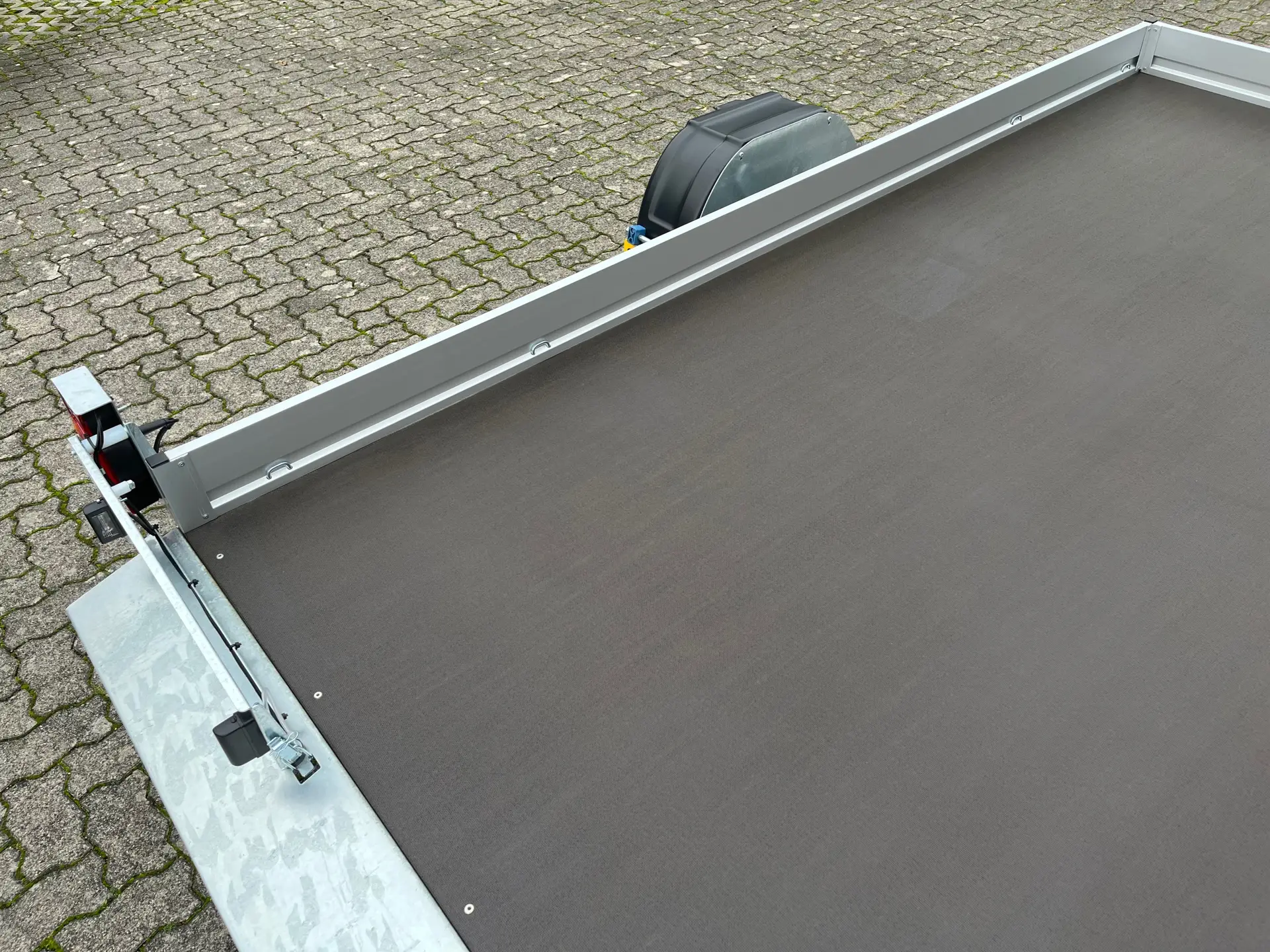 Zur Serienausstattung gehören ein verschraubtes, feuerverzinktes Fahrgestell, V-Deichsel, rutschhemmender Siebdruckboden, Verzurrösen in allen vier Ecken, Kunststoffkotflügel, klappbarer Kennzeichenhalter, Automatik-Stützrad sowie eine mechanische Sicherung der Schwenkachse in Fahrstellung.