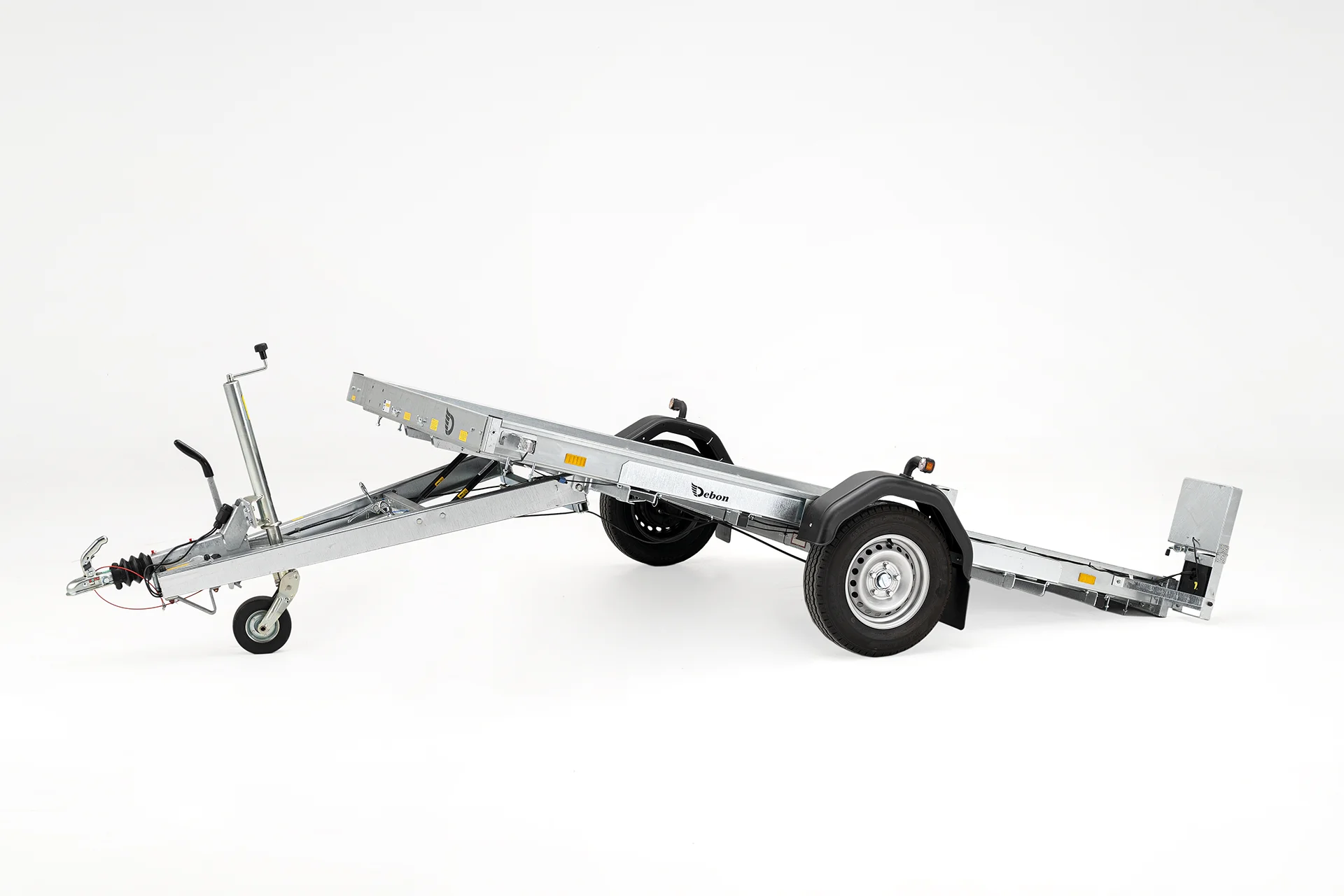 Der kippbare Plattformanhänger Debon Roadster Platform wurde entwickelt, um den hohen Anforderungen von Bauunternehmen, Landschaftsgärtnern, Landwirten und anspruchsvollen Privatkunden gerecht zu werden. Das integrierte Kipp-System mit Gasdruckfeder sorgt für ein kontrolliertes und müheloses Absenken der Ladefläche.