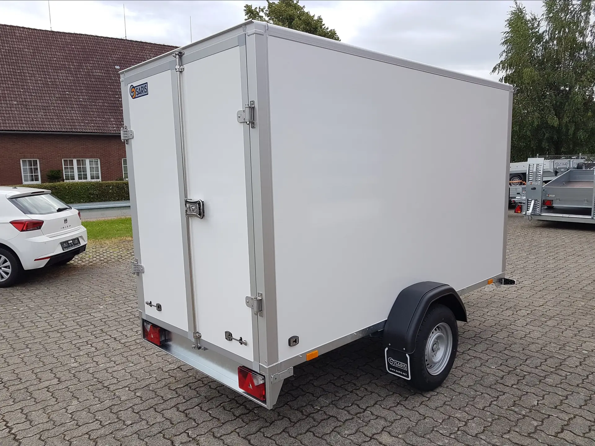 Optional erhältlich: Seitentür links oder rechts, Seitenklappe, Heckrampe statt Türen, Stoßdämpfer (100 km/h Zulassung), Zurrschienen, vollständige LED-Beleuchtung, Reserverad mit Halter, Anhängerschloss und weitere Ausstattungsvarianten.