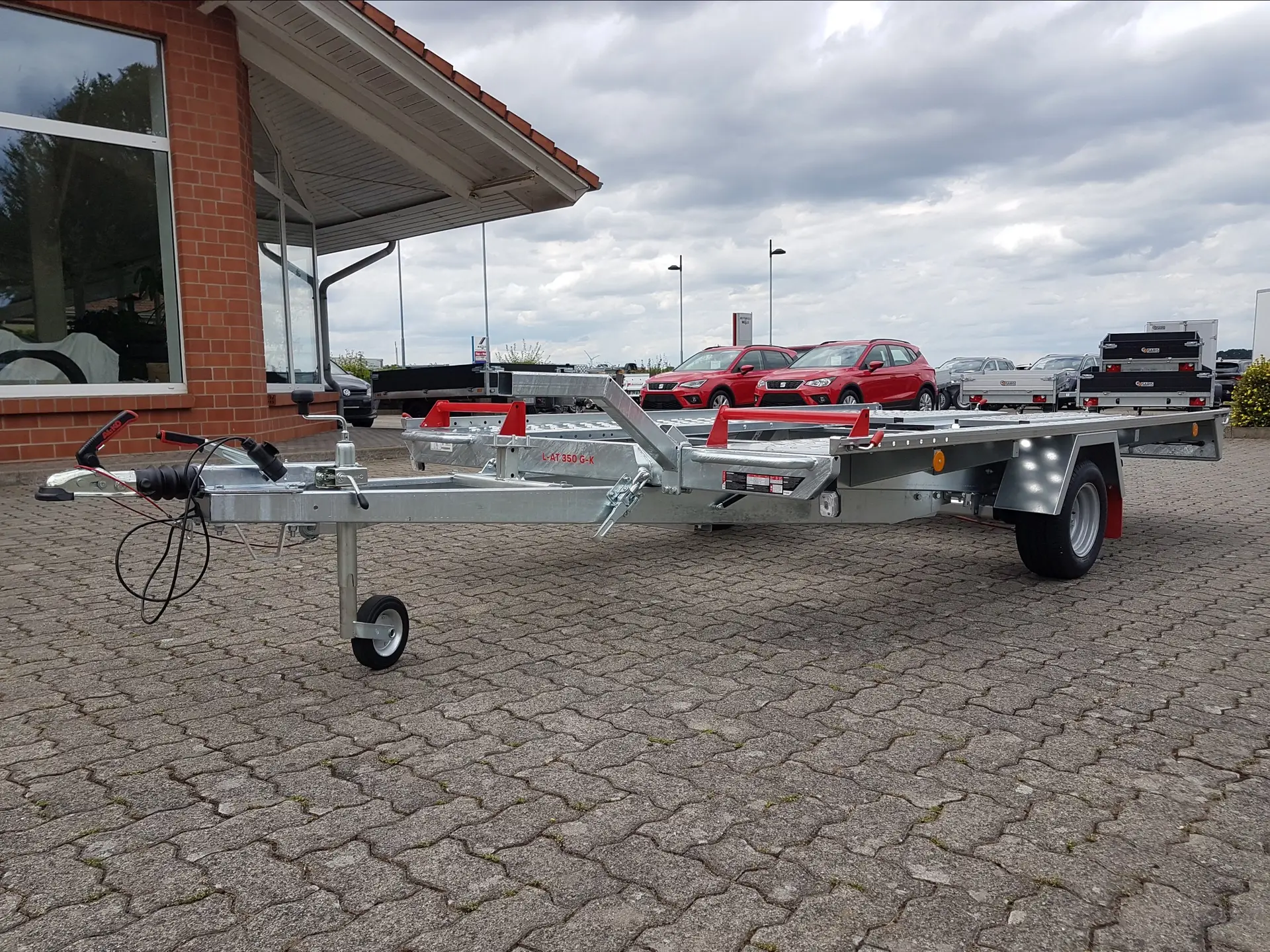 Der Autotransportanhänger L-AT 480 TR-K (3500 kg) wurde für den professionellen Einsatz entwickelt. Mit Aluminium-Boden nach VDI 2700, robuster Stahlkonstruktion und Tridem-Achssystem bietet er maximale Stabilität, Sicherheit und Langlebigkeit.