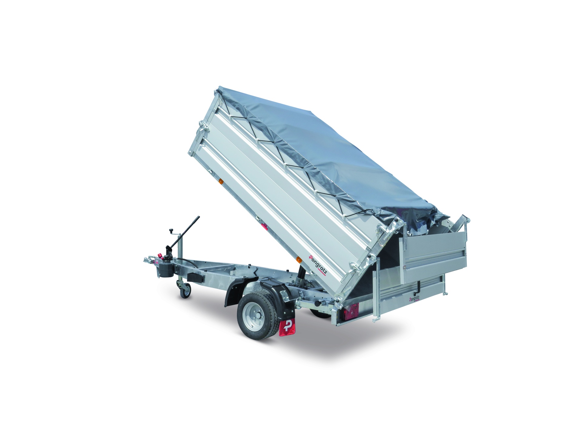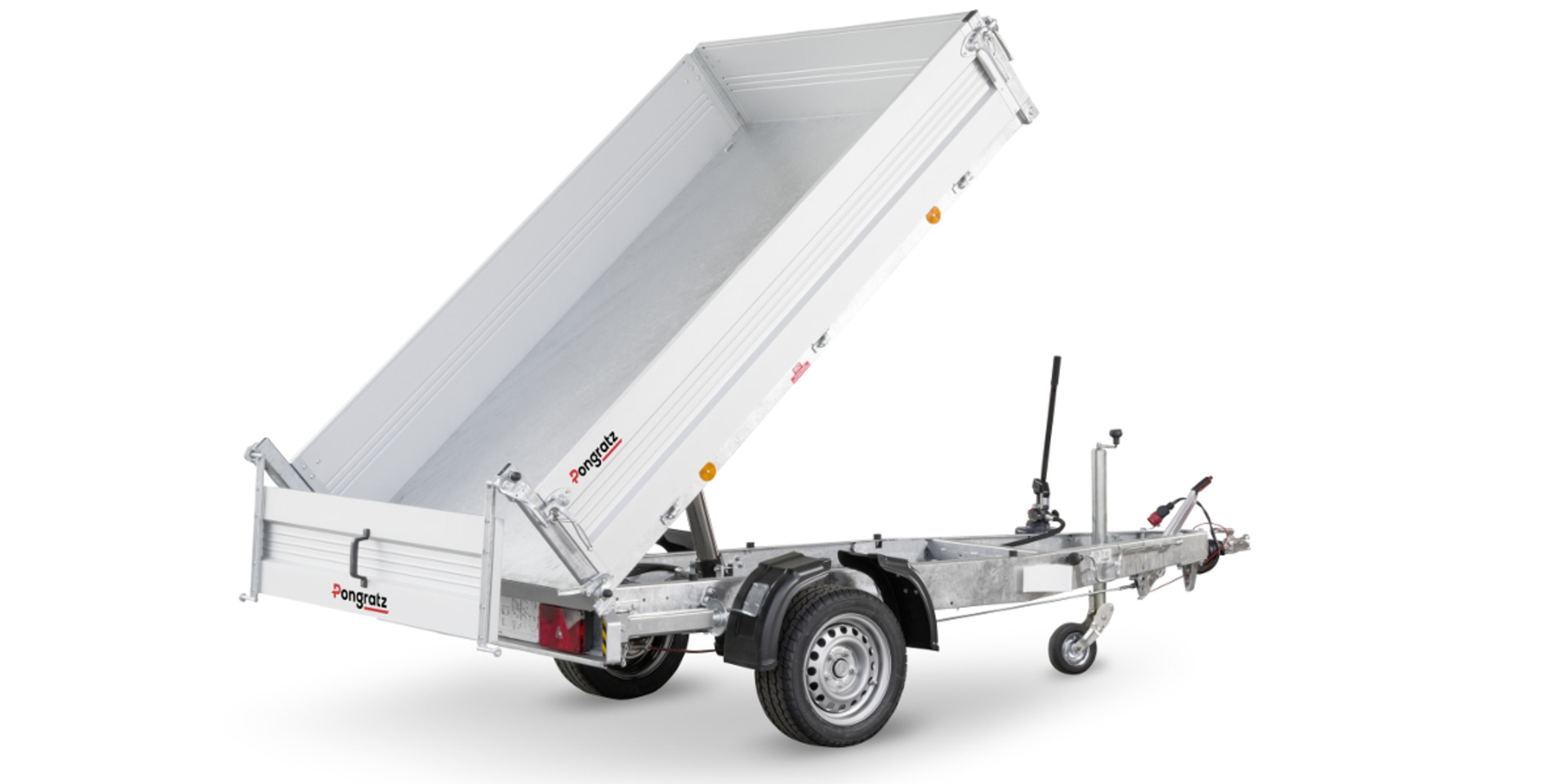 Mit manueller Hydraulik-Kippfunktion nach hinten, 36 cm hohen eloxierten Aluminiumbordwänden (klappbar und abnehmbar) sowie einem verzinkten Stahlboden überzeugt er durch Stabilität und Langlebigkeit.