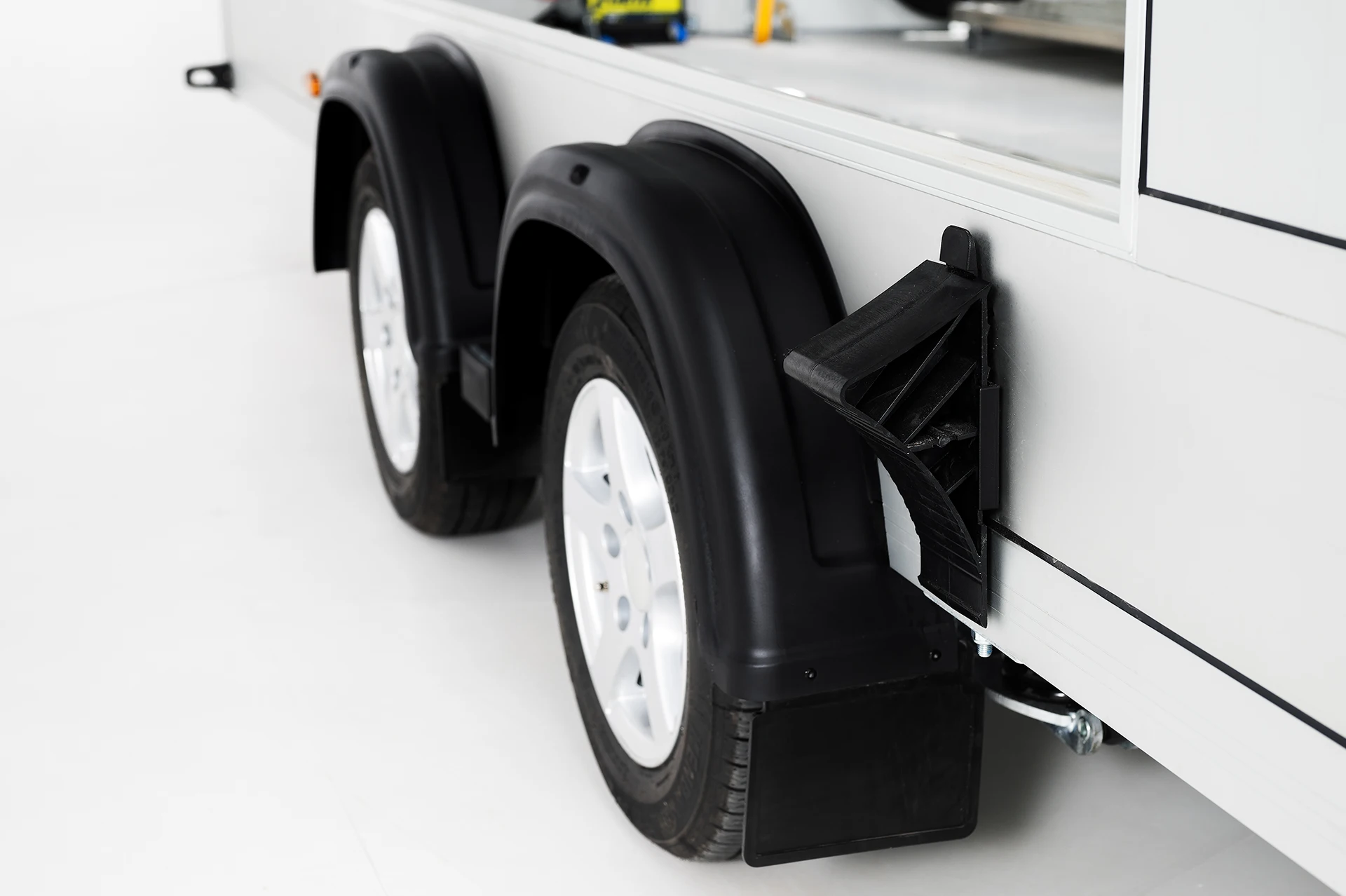 Dank seines aerodynamischen Designs mit Deflektor und Polyester-Dach überzeugt der Anhänger nicht nur optisch, sondern trägt auch zu einem reduzierten Kraftstoffverbrauch bei.