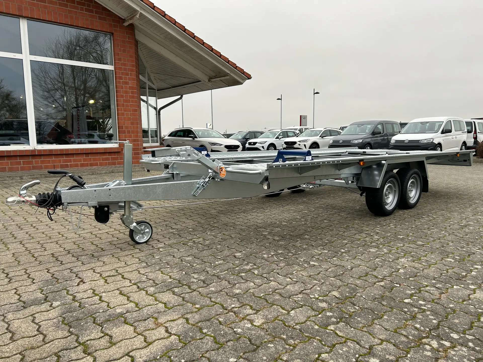 Der Autoanhänger L-AT 470 TK 2 (3500 kg) wurde für den professionellen Fahrzeugtransport entwickelt. Mit robustem Stahlrahmen, Tandemachse und Aluminium-Riffelblech zwischen den Fahrspuren bietet er maximale Stabilität, Sicherheit und Langlebigkeit.