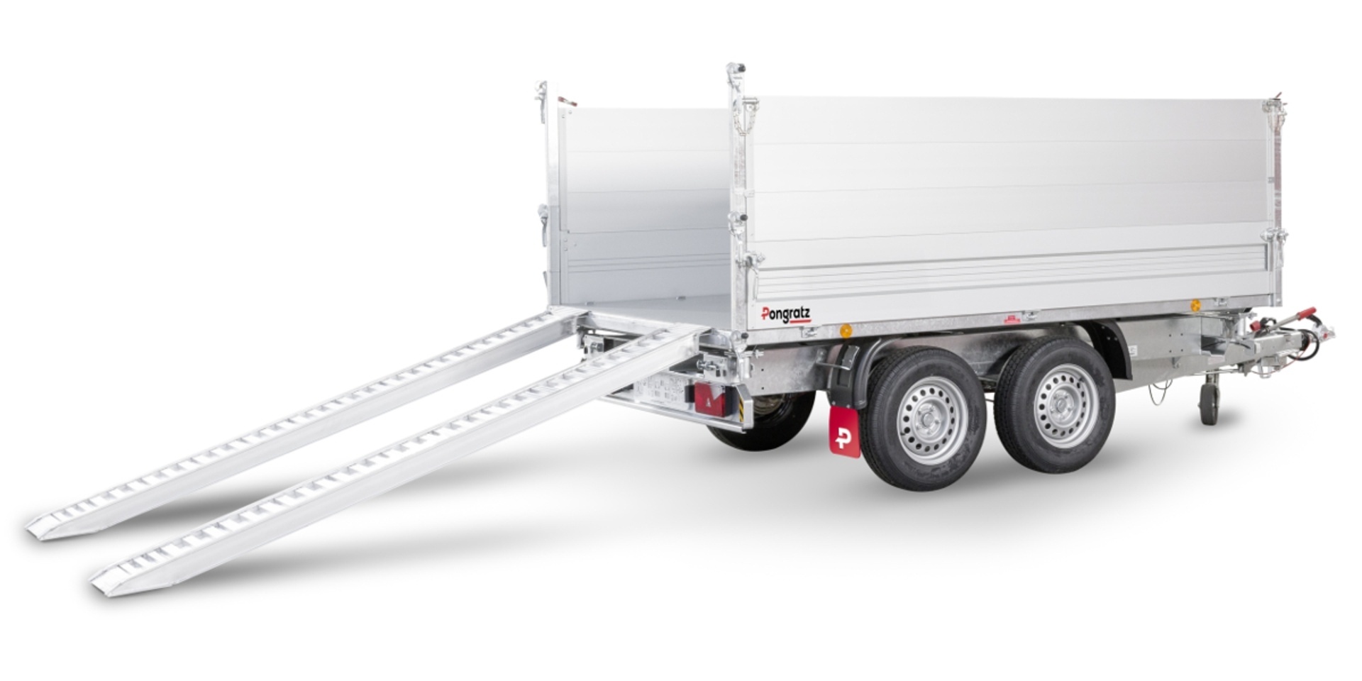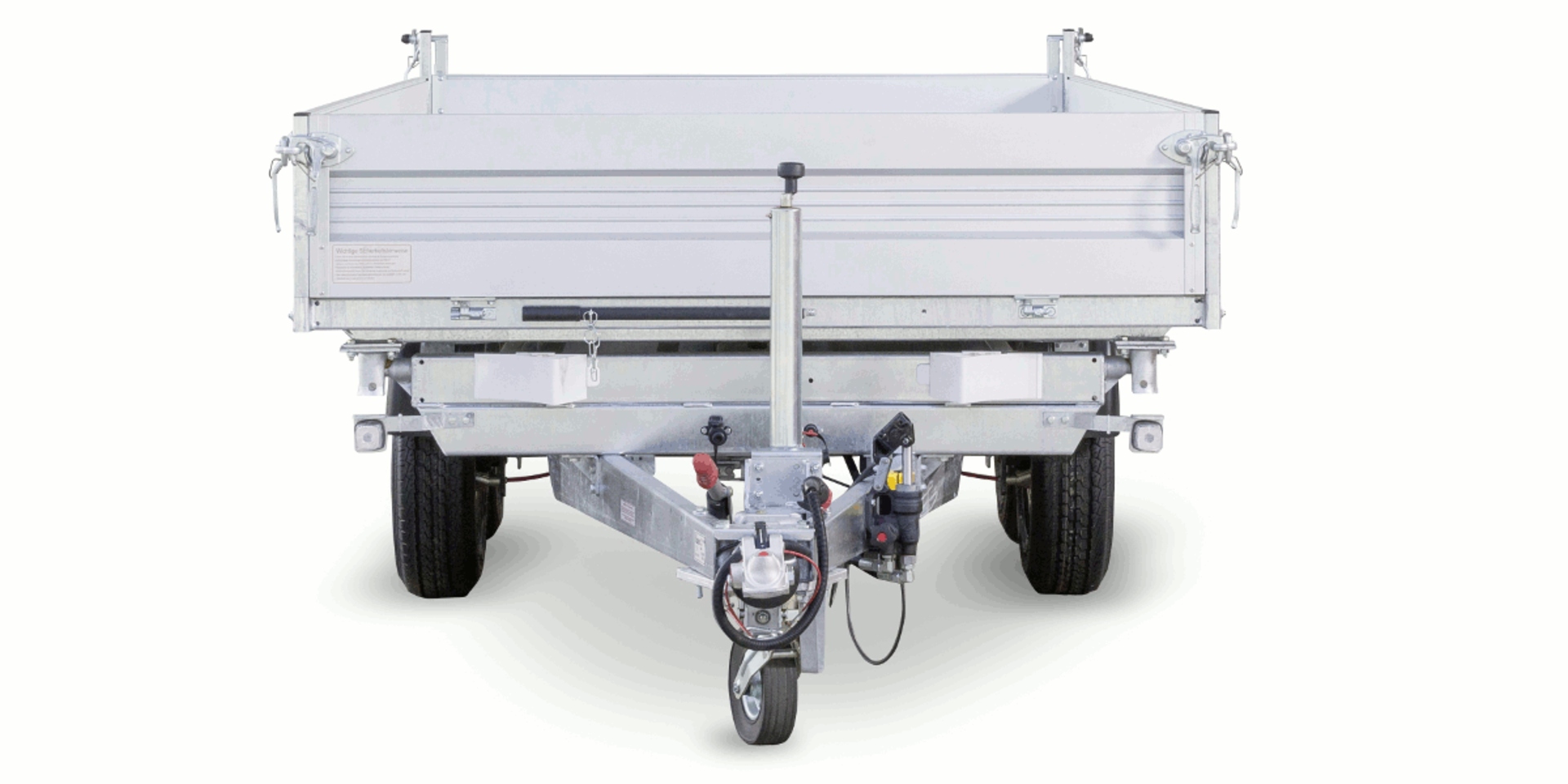 Der SKS ALU Dreiseitenkipper wird serienmäßig ausgestattet und einsatzbereit geliefert. Verschiedene Gewichtsklassen ermöglichen eine optimale Anpassung an Ihr Zugfahrzeug. Optionales Zubehör ist auf Anfrage erhältlich.